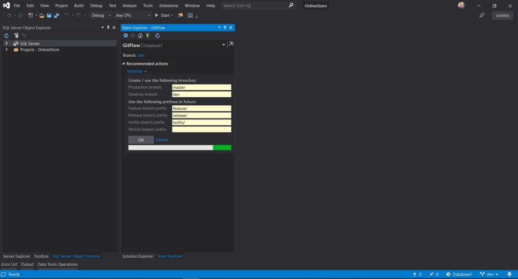 Una vez instalado, sólo deberemos verificar y mapear las ramas por defecto con sus correspondientes nomenclaturas en nuestro desarrollo. En nuestro caso, cambiaremos el nombre de la rama Development, incluyendo dev.