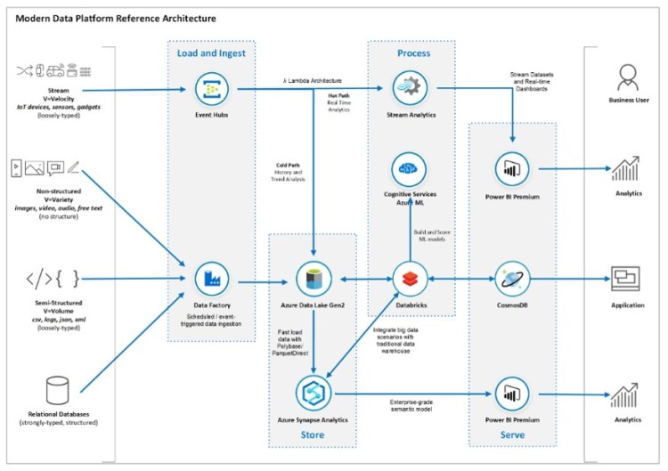 Para ello, lo primero que necesitamos es recordar cómo es el diagrama de dicha arquitectura y para ello, utilizaré la Plataforma Moderna de Datos de Azure, que utilicé hace unos días en la entrada: