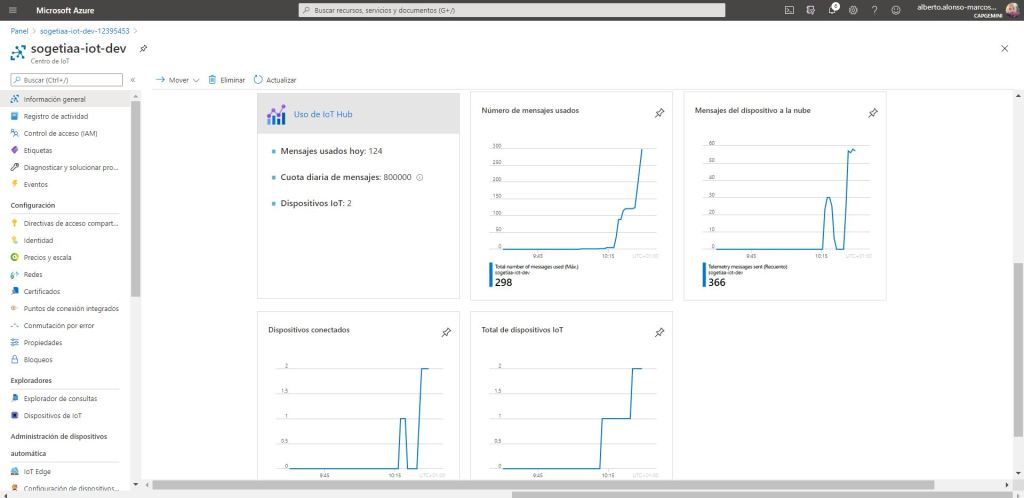 Finalmente, sólo quedaría arrancar nuestro dos Raspberry Pi y verificar que recibimos los datos en nuestro Azure IoT Hub.