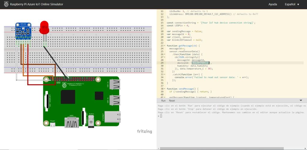 Para ello, sólo tienes que acceder a la siguiente web, añadir la cadena de conexión de tu Azure IoT Hub y pulsar Run.