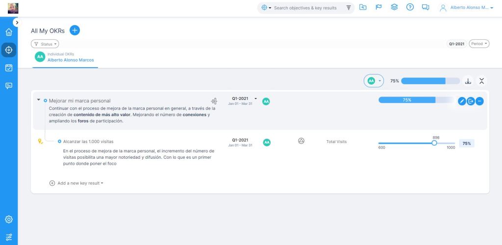 Como conclusión, comentar que la experiencia con la herramienta ha sido muy positiva. Me parece muy fácil de utilizar, con múltiples opciones para crear resultados claves, ligarlos a los OKR, ofrecerlos como nuevos objetivos para otras personas, visualizar los OKR del resto de integrantes del equipo. En definitiva, muy recomendable su uso.