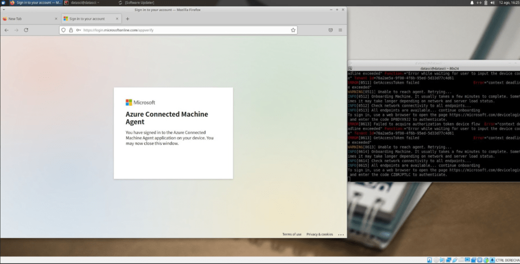 El proceso toma su tiempo y te obligará a autenticarte en Azure.