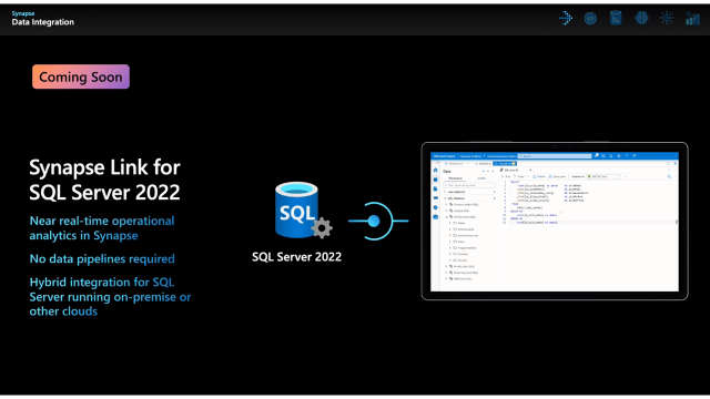 Synapse Link for SQL Server 2022, que para mi es la guinda en la tarta en cuanto a las posibilidades en Analítica Avanzada de datos y explico porqué. El pasado Summit pregunté si a través de Synapse se podría implementar Change Data Capture de modo directo (sin usar Azure Data Factory), me respondieron que «por ahora no». Así que espero que con esta nueva capacidad de conexión a SQL Server 2022 de forma directa, esas funciones puedan ser invocadas desde Synapse, algo que de ser así, simplificará enormemente los procesos de integración desde la información transaccional hasta el Data Lake corporativo. Así pues, ¡crucemos los dedos!