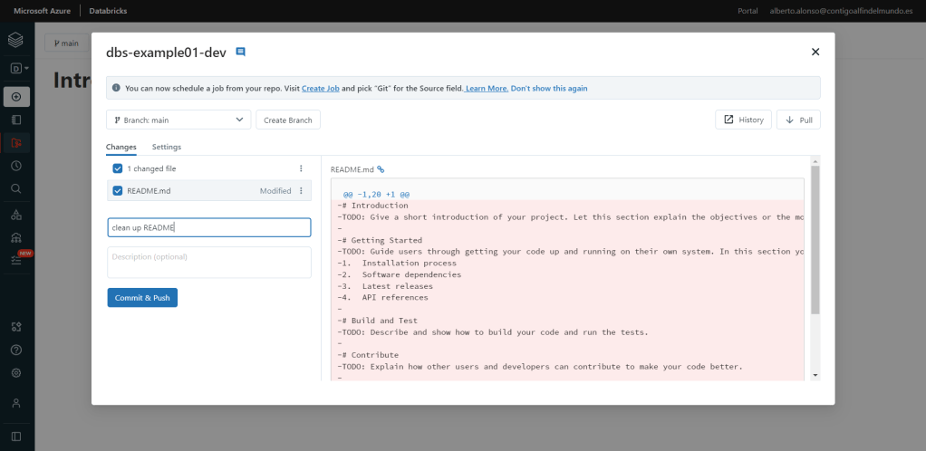 Para comprobar que el ejercicio ha funcionado, sólo tendremos que editar el fichero README.md desde nuestro Azure Databricks