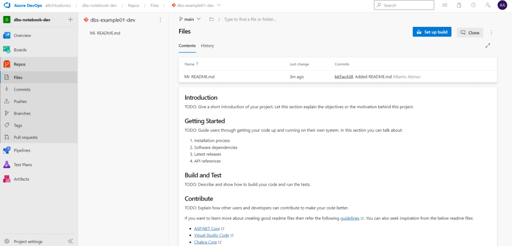 Pues justo es aquí donde Azure DevOps aparece en juego, ya que nos permite vincular un repositorio con el Workspace de nuestro Azure Databricks. En el step-by-step de hoy, voy a completar un caso de uso que sirve como guía para «solucionar» de un modo sencillo el no haber comenzado a desarrollar conectado al repositorio. Veamos