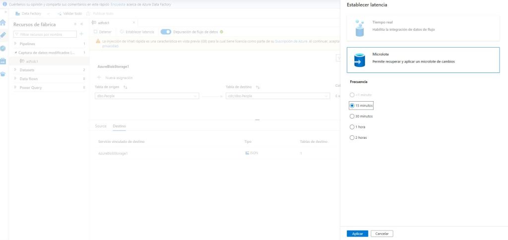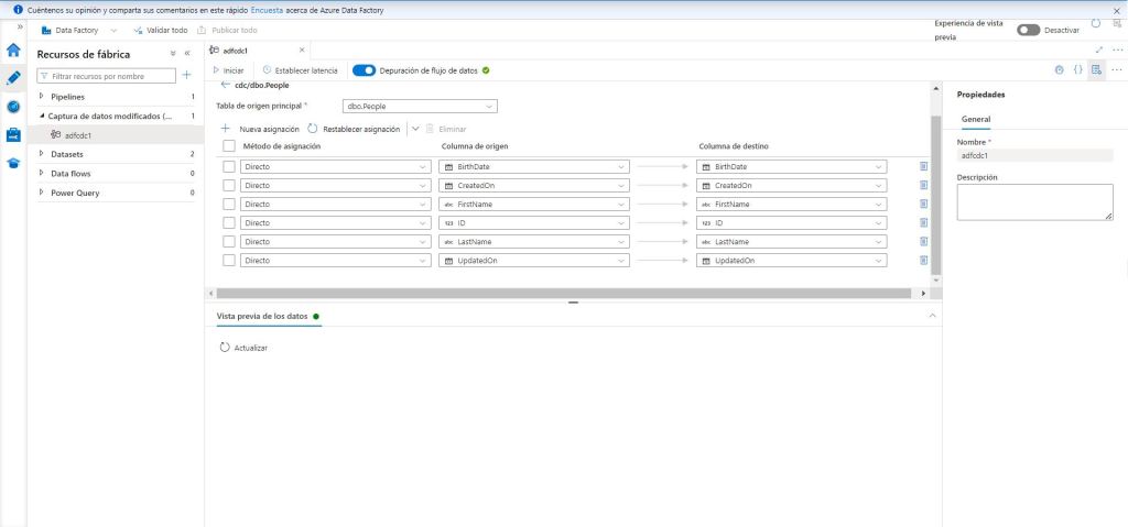 Una vez hemos completado la creación de los recursos para completar el pipeline CDC de Azure Data Factory, saltamos al Workspace de ADF y comenzamos a crear uno. Recordar que se trata de un servicio en preview, con lo que no es recomendable su uso en procesos de producción 😉
