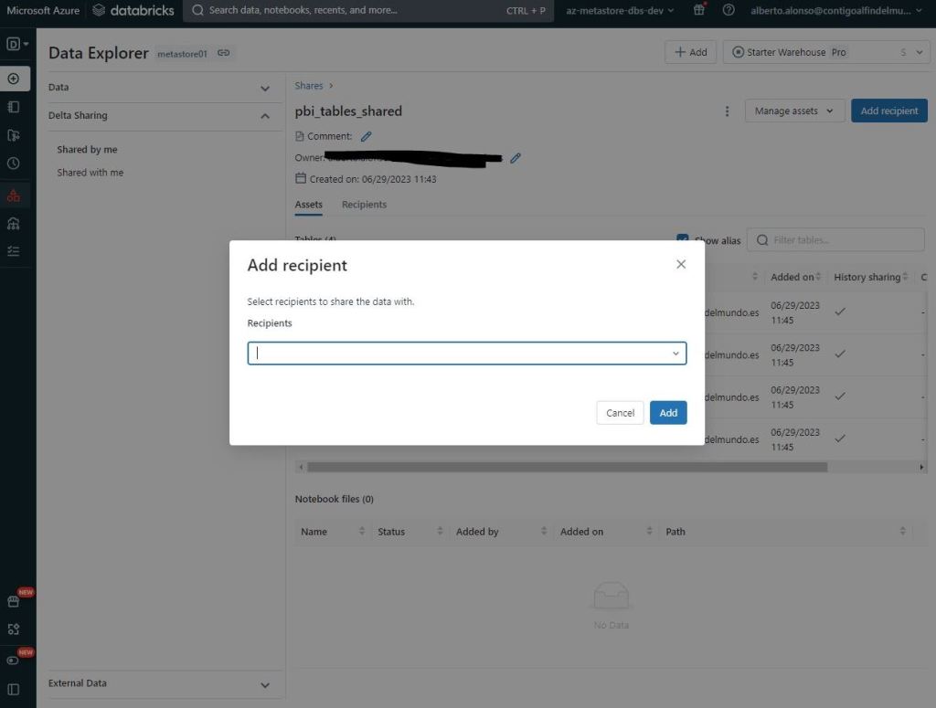 Cada vez que avanzo un poco más con Unity Catalog, más me gusta y sobre todo entiendo el motivo por el cual Databricks se está volcando en ello. Si hace unas semanas hablé de la gobernanza y configuración de un metastore, hoy quiero continuar con Delta Sharing que no es otra cosa que un protocolo Open Source para la compartición de datos, ya sea entre departamentos de una misma organización, como con externos.