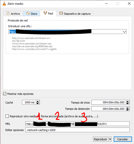 Para finalmente conectar tu cámara a VLC, tan sólo debes pulsar sobre Medio, en el desplegable sobre Red e incluir la url que aparece en el área de tu cámara.