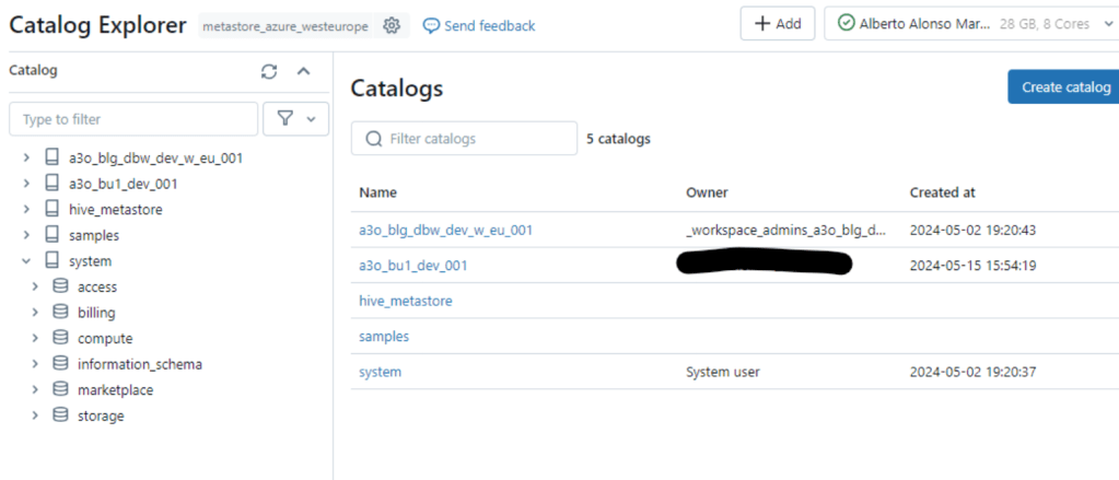 En Unity Catalog existe una serie de schemas que recogen el detalle de los procesos que se ejecutan dentro del ecosistema de Databricks, y para muestra un botón. Abajo puedes observar los schemas que cuelgan del Catalog llamado system una vez habilitados. Estos schemas «chivatos» son: access, billing, compute, marketplace y storage y te permiten acceder a infinidad de datos con los que construir métricas a incluir en tus propios dashboards. Si miras dentro de tu Catalog Explorer verás que el schema information_schema, es el único que está habilitado por defecto.