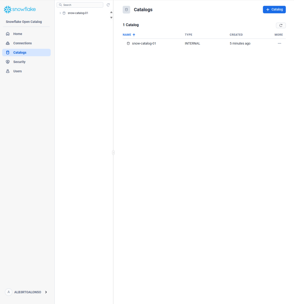 Mientras tanto, en nuestra cuenta de Snowflake ya aparece el recién creado Open Catalog.