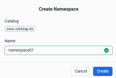 Lo siguiente es configurar un Namespace, tan sólo seleccionando el Catalog recién creado e incluyendo el nombre que decidas: