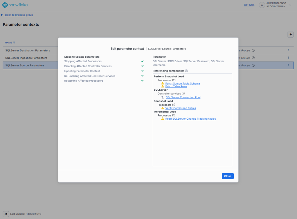 TIP: es necesario que tanto la BBDD, como las tablas, tengan activado CHANGE_TRACKING.